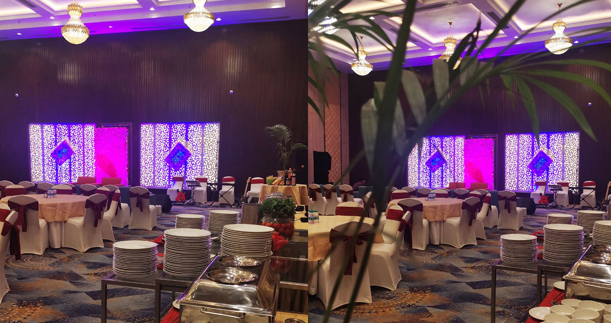 Celebrate your special events at The Aurus. Our luxury banquet hall in Berhampore has a huge space of 4000 sq. ft. to accommodate a maximum of 180 guests. With cutting-edge technology and slickest design, this luxurious multi functional banquet hall is perfect for your events.